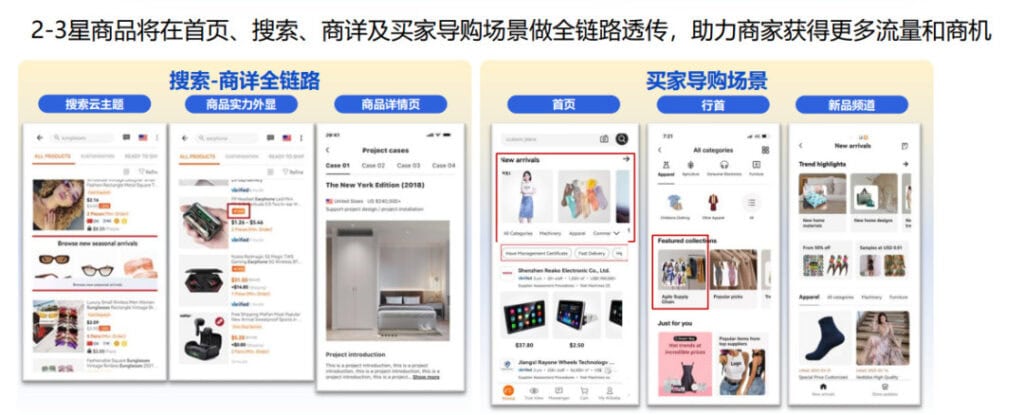 講了那么多規(guī)則和要求,最后也要講一講星級商品能給我們商家?guī)碓鯓拥暮锰?,毋庸置疑?-3星商品,在往后的各流量賽道中會更加有優(yōu)勢,同時作為新增的評級,國際站也會針對性的進行全鏈路的場景擴充,例如搜索鏈路中星級的外顯,或是首頁的專門入口等等,來幫助這些產(chǎn)品獲得更多的流量。
