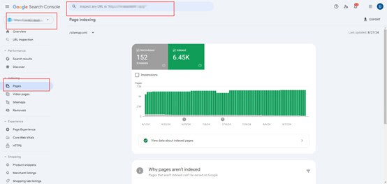 ②全部頁面,點(diǎn)擊左側(cè)“Pages”就可以查看網(wǎng)站頁面的整體收留率情況,以及未被收錄的具體頁面有哪些。