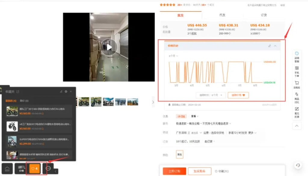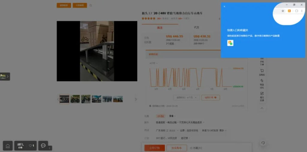 在工具欄和產(chǎn)品詳情頁均可查看1688產(chǎn)品近3個月或6個月的產(chǎn)品價格歷史,還可以設(shè)置降價提醒,點擊追蹤產(chǎn)品按鈕,即可將此產(chǎn)品加入收藏夾,在價格下降時就會收到降價通知,追蹤市場最久為1年。