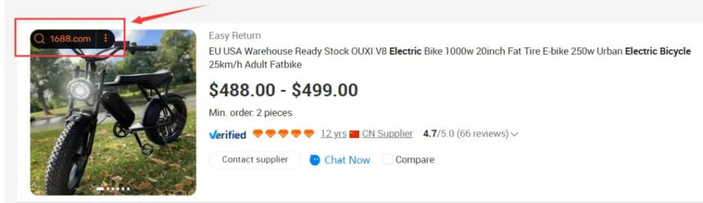 下圖這款產(chǎn)品是商家發(fā)布在阿里國際站上的,假設(shè)你想找它的供應(yīng)商,只要點擊產(chǎn)品左上角的搜索按鈕,一鍵即可搜索1688、淘寶、速賣通、亞馬遜等數(shù)十個電商網(wǎng)站上的同款產(chǎn)品,找到該產(chǎn)品的供應(yīng)商并比價。