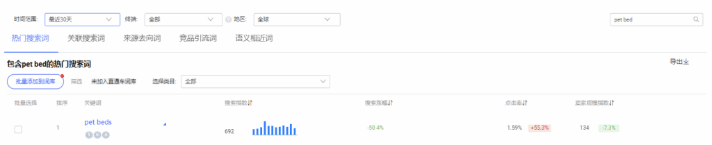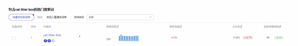 下圖為pet beds和cat litter box & accessories兩個(gè)類目查詢到的同行標(biāo)桿結(jié)果: