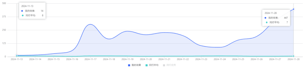 若問鼎的點(diǎn)擊流量呈現(xiàn)不合理的增長(zhǎng),例:消費(fèi)電子類目某平臺(tái),問鼎點(diǎn)擊量在半個(gè)月內(nèi)從14次飆升至447次,這種情況大概率是站外流量介入了。